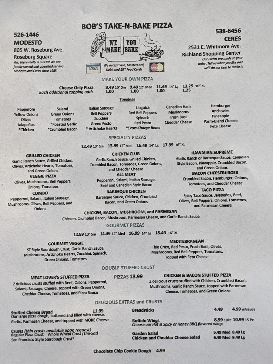 Bob's Take n Bake Pizza offers a menu that’s inviting and straightforward, centered around comforting, hearty pizzas crafted for sharing and savoring in a relaxed setting. Whether you’re picking up a pizza for a casual family dinner or gathering with friends for a laid-back weekend meal, the variety here fits those easygoing moments perfectly.